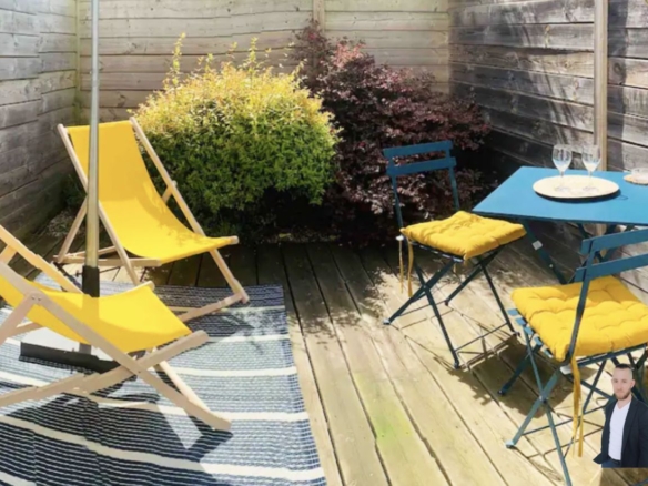Coté extérieur une belle terrasse idéale pour manger, se détendre et bronzer l'été!